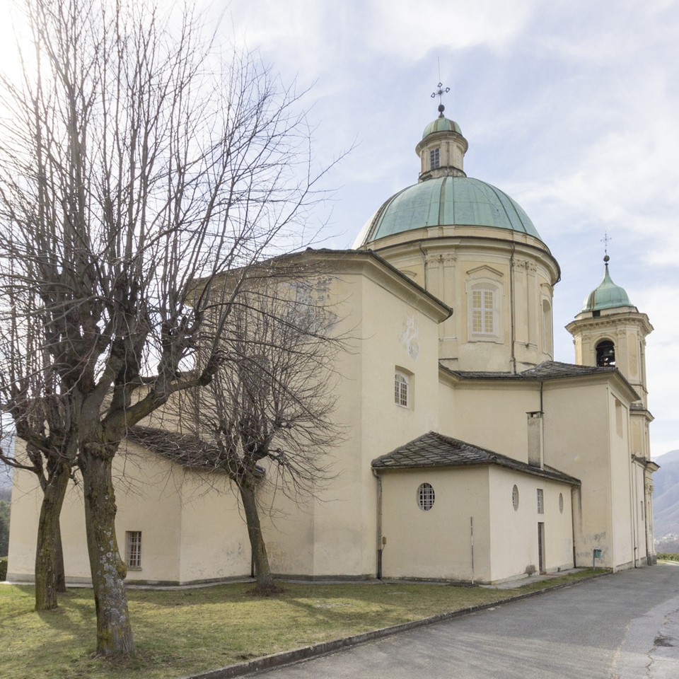 La facciata concava della chiesa di S. Pietro è fiancheggiata da due caratteristici campanili, e dominata in alto e al centro da un'ampia cupola di forma ellissoidale. Sull'ellittico cornicione di base della cupola della facciata è ben visibile lo scudo sabaudo accoppiato allo stemma Piccon. Un'altra lapide sulla facciata ricorda che nel 1716 la chiesa venne dedicata a S. Pietro in Vincoli da Vittorio Amedeo, re di Sicilia.