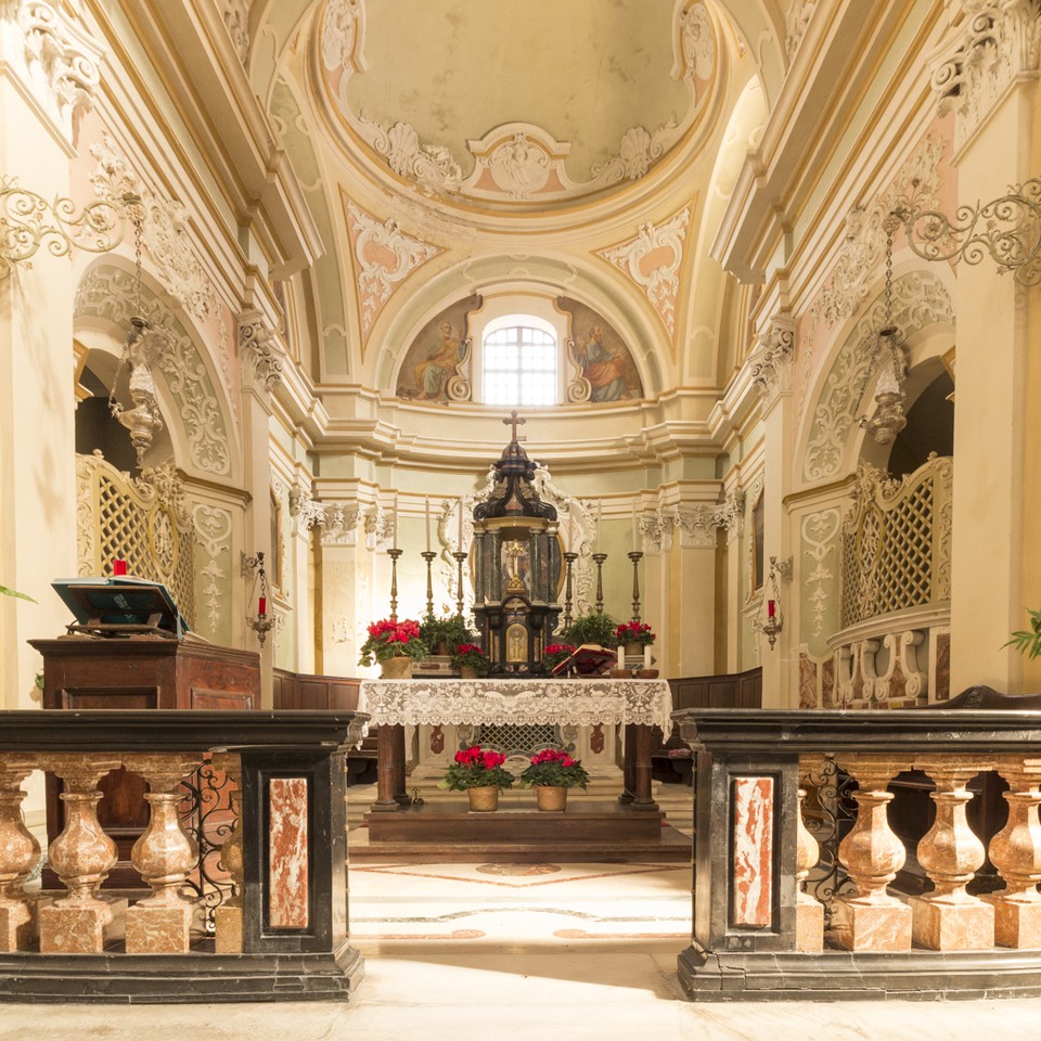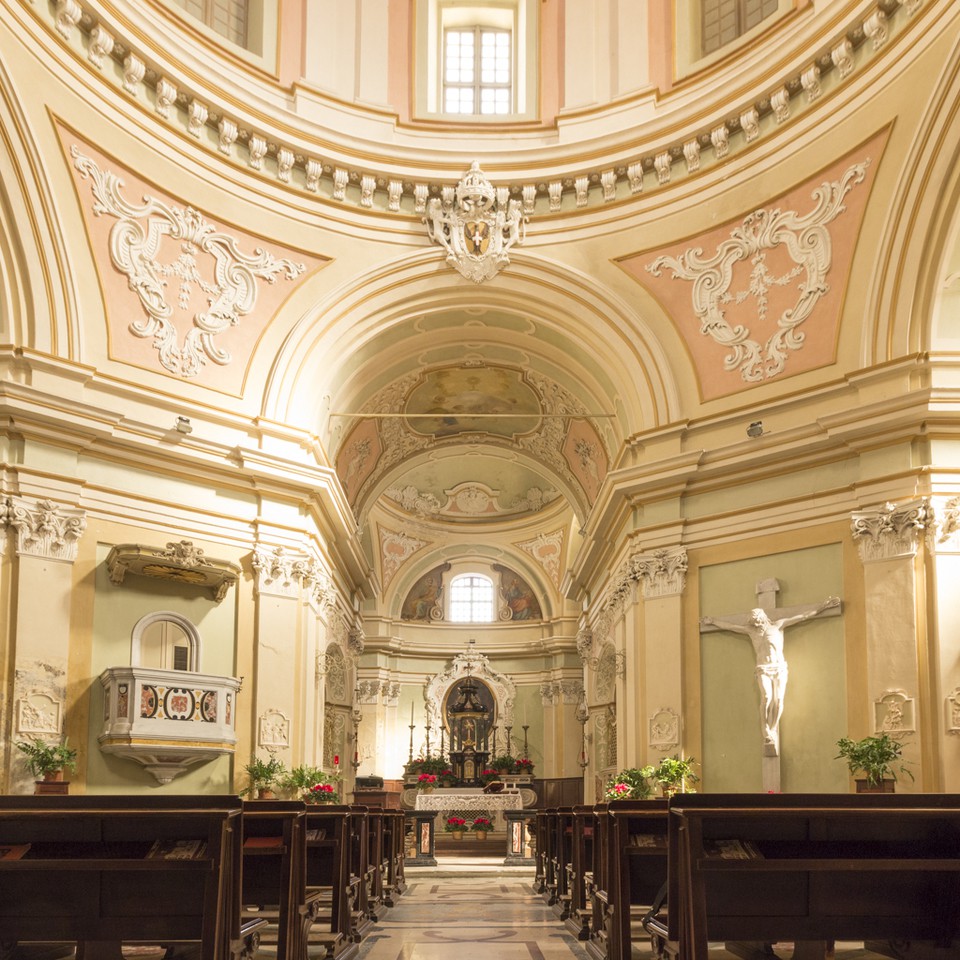 L'interno è in stile barocco e la pianta della chiesa è a croce greca con ampia abside.